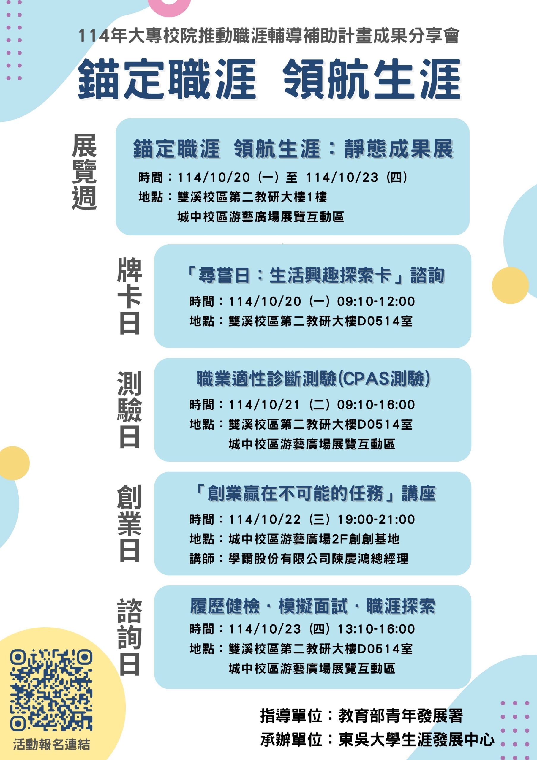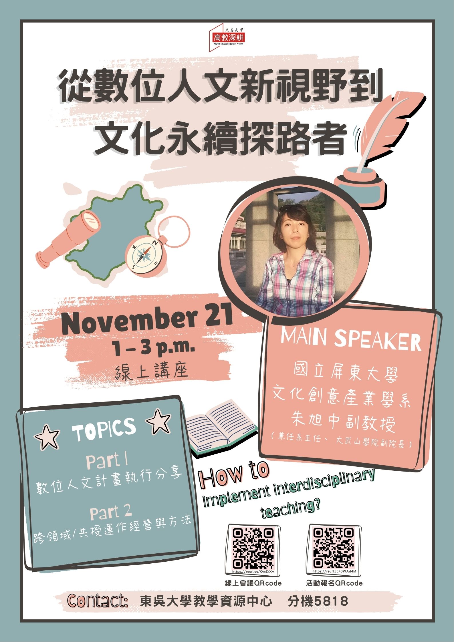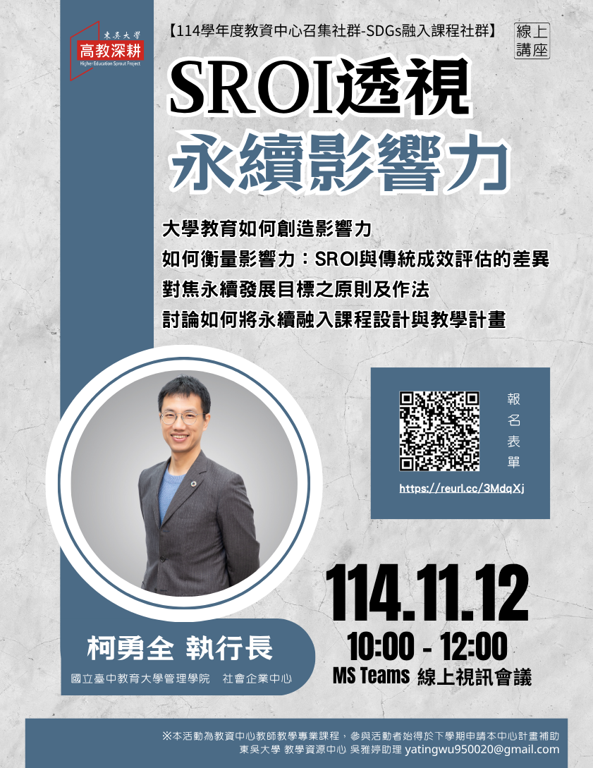 最新消息 ● ○ 【教學資源中心】本校教學資源中心辦理「SDGs融入課程社群──SROI透視永續影響力」線上講座,歡迎踴躍報名! 2025 年 10 月 27 日 【教學資源中心】本校教學資源中心辦理「從數位人文新視野到文化永續探路者」線上講座,歡迎踴躍報名! 2025 年 10 月 21 日 【生涯發展中心】10/20-10/23「錨定職涯 領航生涯」系列活動開跑囉! 2025 年 10 月 14 日 「2025台灣應用心理學會年會暨學術研討會」在東吳舉行 2025 年 10 月 9 日 私校第一 東吳「學位論文資源貢獻獎」六連霸 2025 年 10 月 9 日 日本千葉商科大學來訪東吳 深化兩校交流 2025 年 10 月 9 日 【圖書館公告】 日文系教師著作 2025 年 10 月 9 日 東吳6位教授入榜ScholarGPS及史丹佛大學全球前2%頂尖學者及科學家 2025 年 10 月 8 日 【圖書館公告】法律系教師著作 2025 年 10 月 2 日 上一頁 Page1 Page2 Page3 Page4 Page5 下一頁